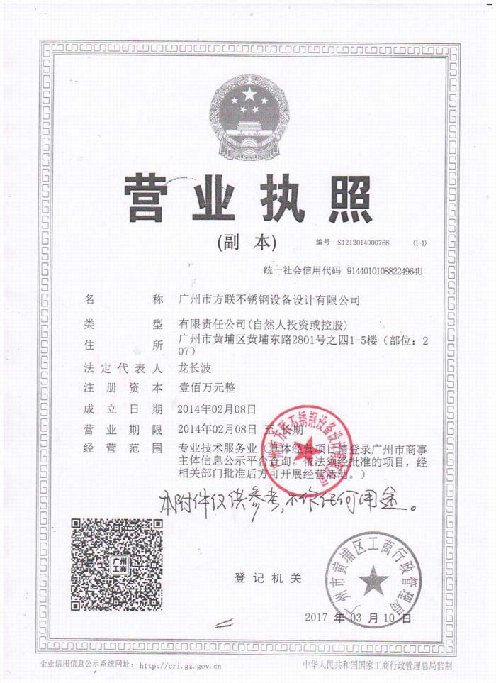 廣州市方聯不銹鋼設備設計有限公司,本著友善、誠信,致力于發展企業、造福社會的公司經營宗旨,聚集了一批具有社會責任感,有行業敬業精神的人才,不斷的提高創新不銹鋼專業設備設計制造能力,打造出一支集研發制造和銷售為一體的團隊。